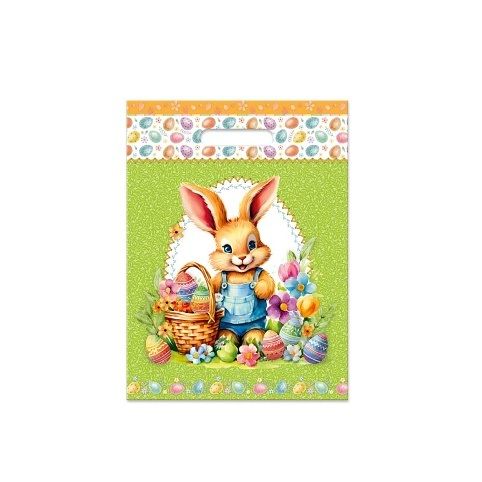 Velikonoční igelitová taška je velmi jednoduchým a praktickým společníkem v období velikonočních svátků. Celoplošně potištěná s vyseknutým uchem a rozšířeným dnem. Materiál LDPE.