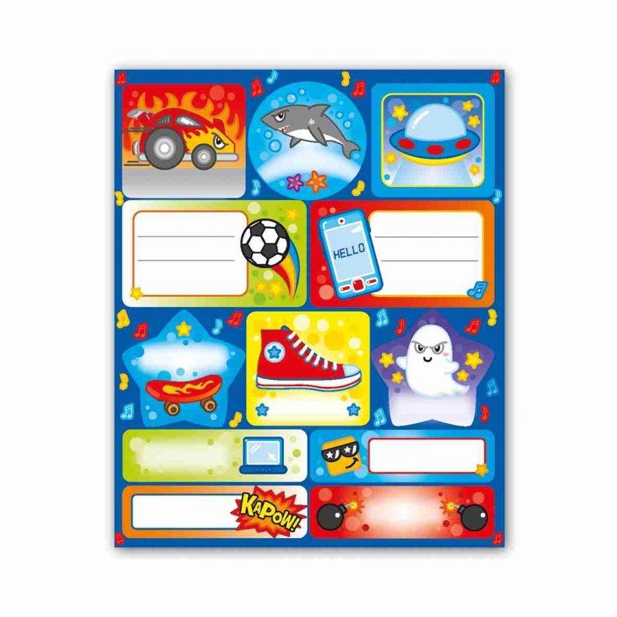 Samolepky obsahují 15 listů, 180 ks samolepek a mají prostor k dopsání jména. Samolepky si mohou děti lepit na cokoli a kamkoli – zápisníčky, obaly sešitů, do památníčků nebo na papír a vytvořit si vlastní obrázek a to hlavní, označit si věci svým jménem.