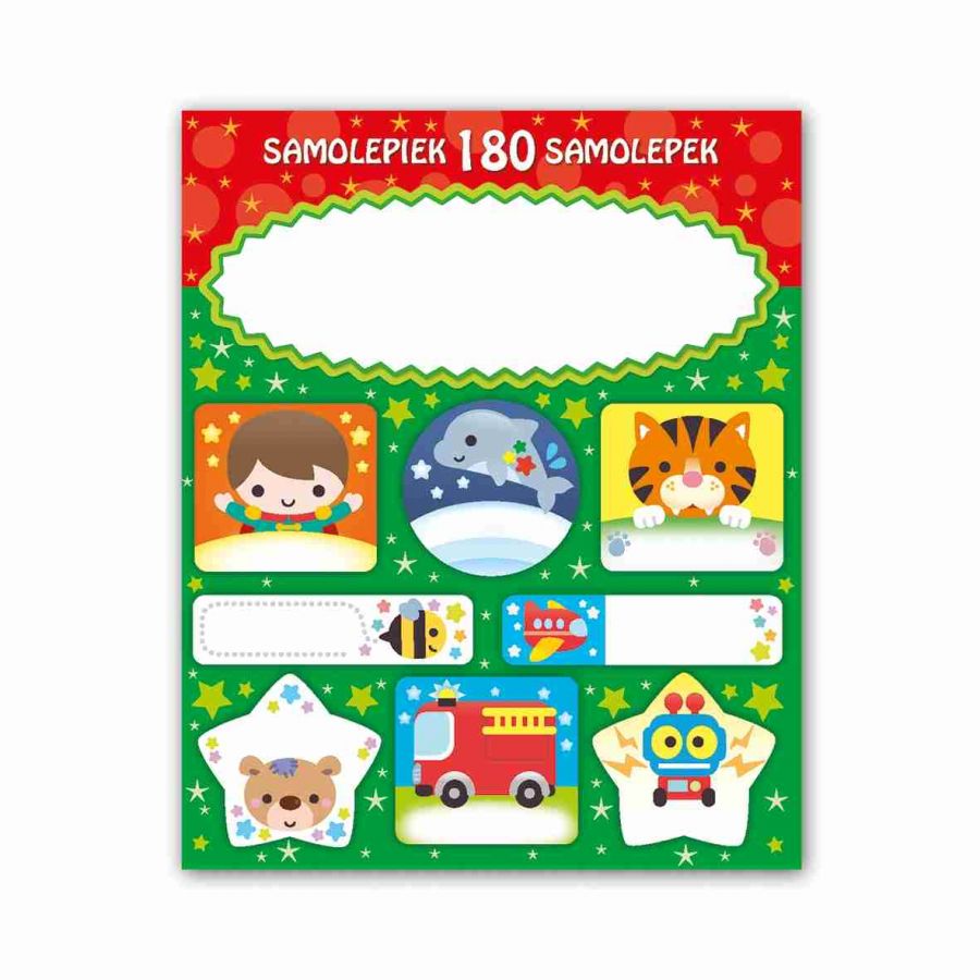 Samolepky obsahují 15 listů, 180 ks samolepek a mají prostor k dopsání jména. Samolepky si mohou děti lepit na cokoli a kamkoli – zápisníčky, obaly sešitů, do památníčků nebo na papír a vytvořit si vlastní obrázek a to hlavní, označit si věci svým jménem.