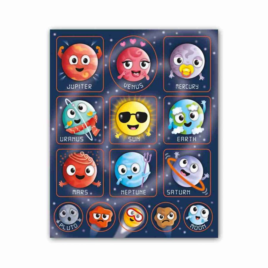 Veselé nálepky - samolepky planety obsahují 15 listů, 210 ks samolepek. Samolepky si mohou děti lepit na cokoli a kamkoli – zápisníčky, obaly sešitů, do památníčků nebo na papír a vytvořit si vlastní obrázek.