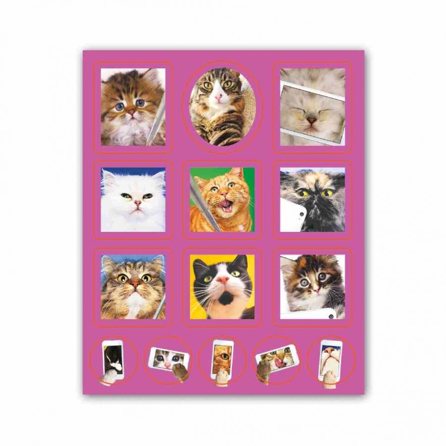 Veselé nálepky - samolepky kočky obsahují 15 listů, 210 ks samolepek. Samolepky si mohou děti lepit na cokoli a kamkoli – zápisníčky, obaly sešitů, do památníčků nebo na papír a vytvořit si vlastní obrázek.