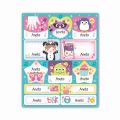 Samolepky se jménem obsahují 15 listů, 180 ks samolepek. Samolepky si mohou děti lepit na cokoli a kamkoli – zápisníčky, obaly sešitů, do památníčků nebo na papír a vytvořit si vlastní obrázek a to hlavní, označit si věci svým jménem.