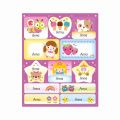 Samolepky se jménem obsahují 15 listů, 180 ks samolepek. Samolepky si mohou děti lepit na cokoli a kamkoli – zápisníčky, obaly sešitů, do památníčků nebo na papír a vytvořit si vlastní obrázek a to hlavní, označit si věci svým jménem.