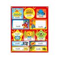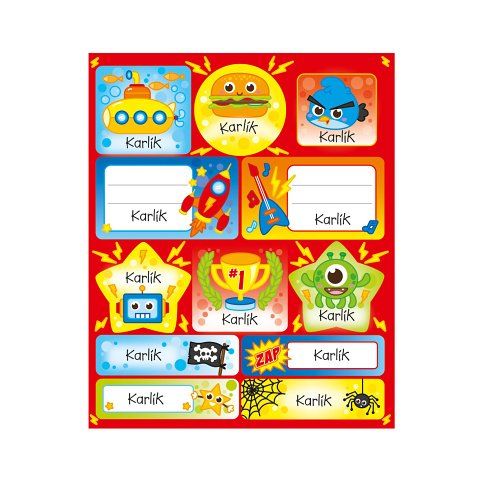 Samolepky se jménem obsahují 15 listů, 180 ks samolepek. Samolepky si mohou děti lepit na cokoli a kamkoli – zápisníčky, obaly sešitů, do památníčků nebo na papír a vytvořit si vlastní obrázek a to hlavní, označit si věci svým jménem.