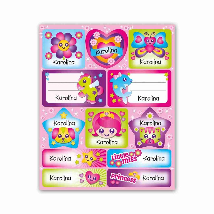 Samolepky se jménem obsahují 15 listů, 180 ks samolepek. Samolepky si mohou děti lepit na cokoli a kamkoli – zápisníčky, obaly sešitů, do památníčků nebo na papír a vytvořit si vlastní obrázek a to hlavní, označit si věci svým jménem.