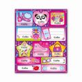 Samolepky se jménem obsahují 15 listů, 180 ks samolepek. Samolepky si mohou děti lepit na cokoli a kamkoli – zápisníčky, obaly sešitů, do památníčků nebo na papír a vytvořit si vlastní obrázek a to hlavní, označit si věci svým jménem.