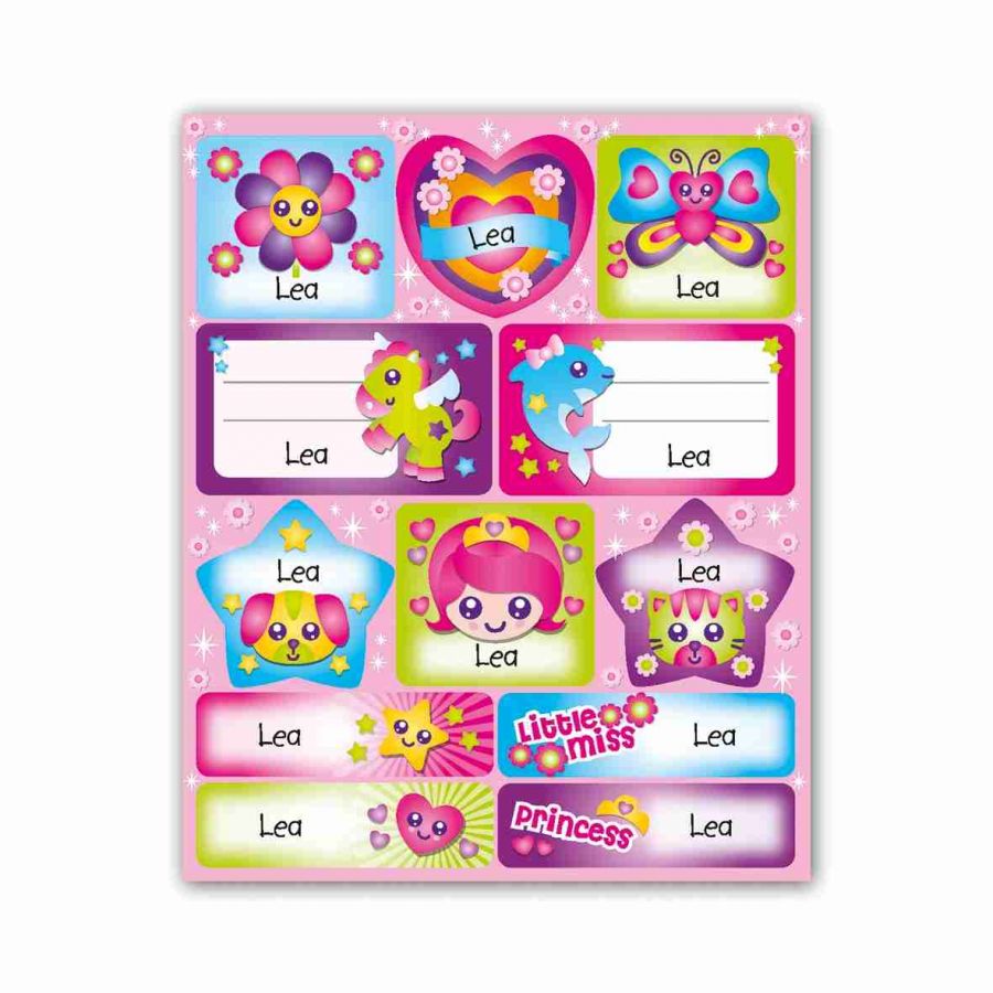 Samolepky se jménem obsahují 15 listů, 180 ks samolepek. Samolepky si mohou děti lepit na cokoli a kamkoli – zápisníčky, obaly sešitů, do památníčků nebo na papír a vytvořit si vlastní obrázek a to hlavní, označit si věci svým jménem.