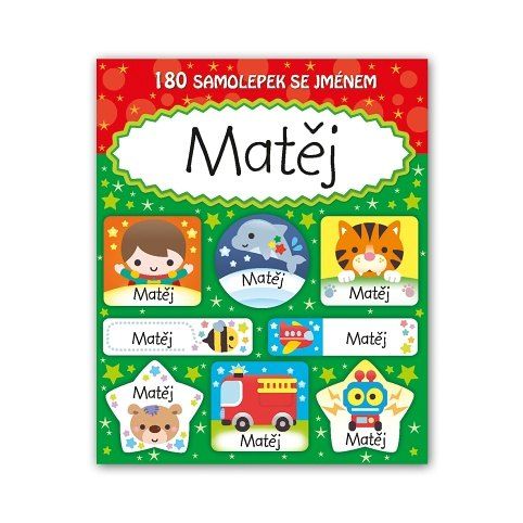 Samolepky se jménem obsahují 15 listů, 180 ks samolepek. Samolepky si mohou děti lepit na cokoli a kamkoli – zápisníčky, obaly sešitů, do památníčků nebo na papír a vytvořit si vlastní obrázek a to hlavní, označit si věci svým jménem.