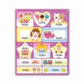 Samolepky se jménem obsahují 15 listů, 180 ks samolepek. Samolepky si mohou děti lepit na cokoli a kamkoli – zápisníčky, obaly sešitů, do památníčků nebo na papír a vytvořit si vlastní obrázek a to hlavní, označit si věci svým jménem.