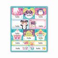 Samolepky se jménem obsahují 15 listů, 180 ks samolepek. Samolepky si mohou děti lepit na cokoli a kamkoli – zápisníčky, obaly sešitů, do památníčků nebo na papír a vytvořit si vlastní obrázek a to hlavní, označit si věci svým jménem.