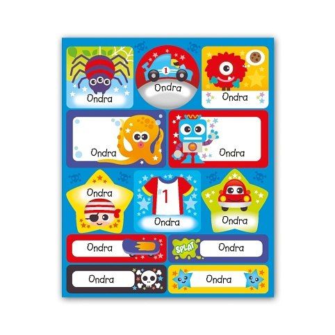Samolepky se jménem obsahují 15 listů, 180 ks samolepek. Samolepky si mohou děti lepit na cokoli a kamkoli – zápisníčky, obaly sešitů, do památníčků nebo na papír a vytvořit si vlastní obrázek a to hlavní, označit si věci svým jménem.