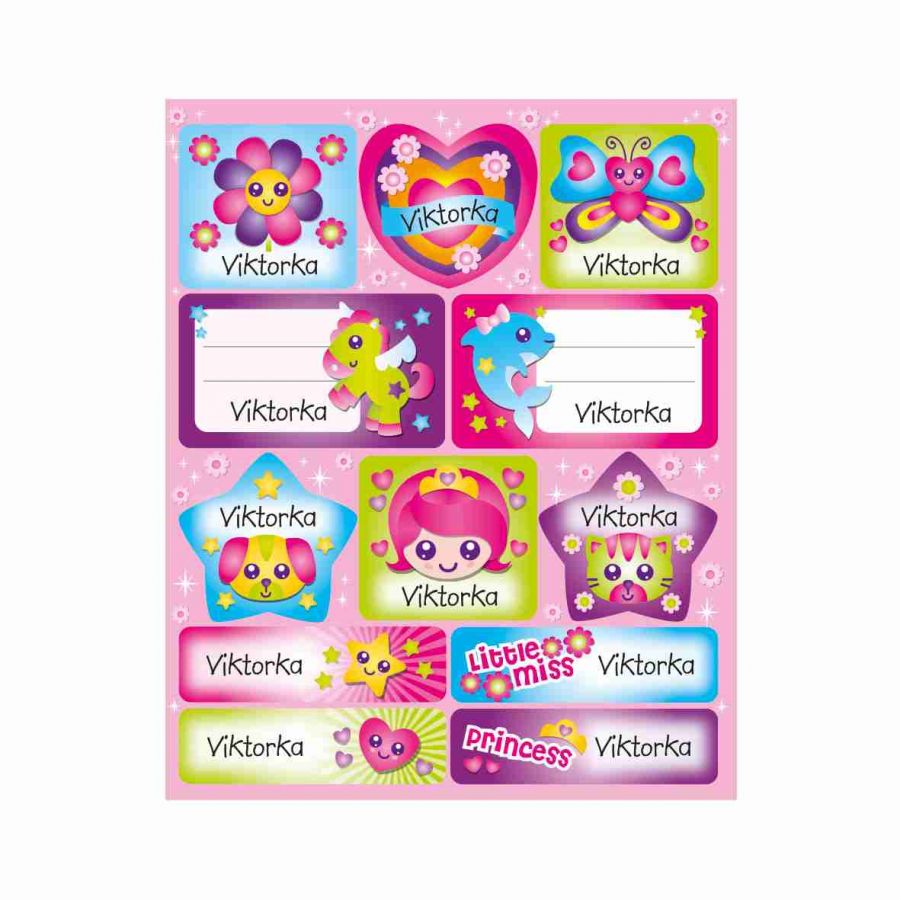 Samolepky se jménem obsahují 15 listů, 180 ks samolepek. Samolepky si mohou děti lepit na cokoli a kamkoli – zápisníčky, obaly sešitů, do památníčků nebo na papír a vytvořit si vlastní obrázek a to hlavní, označit si věci svým jménem.
