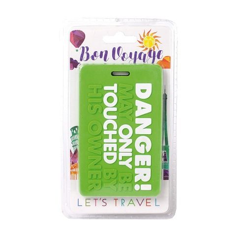 Silikonová visačka na kufr s praktickým uchycením a originálním designem. Zadní strana s popisem pro identifikaci zavazadel.