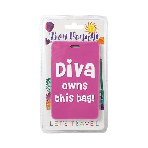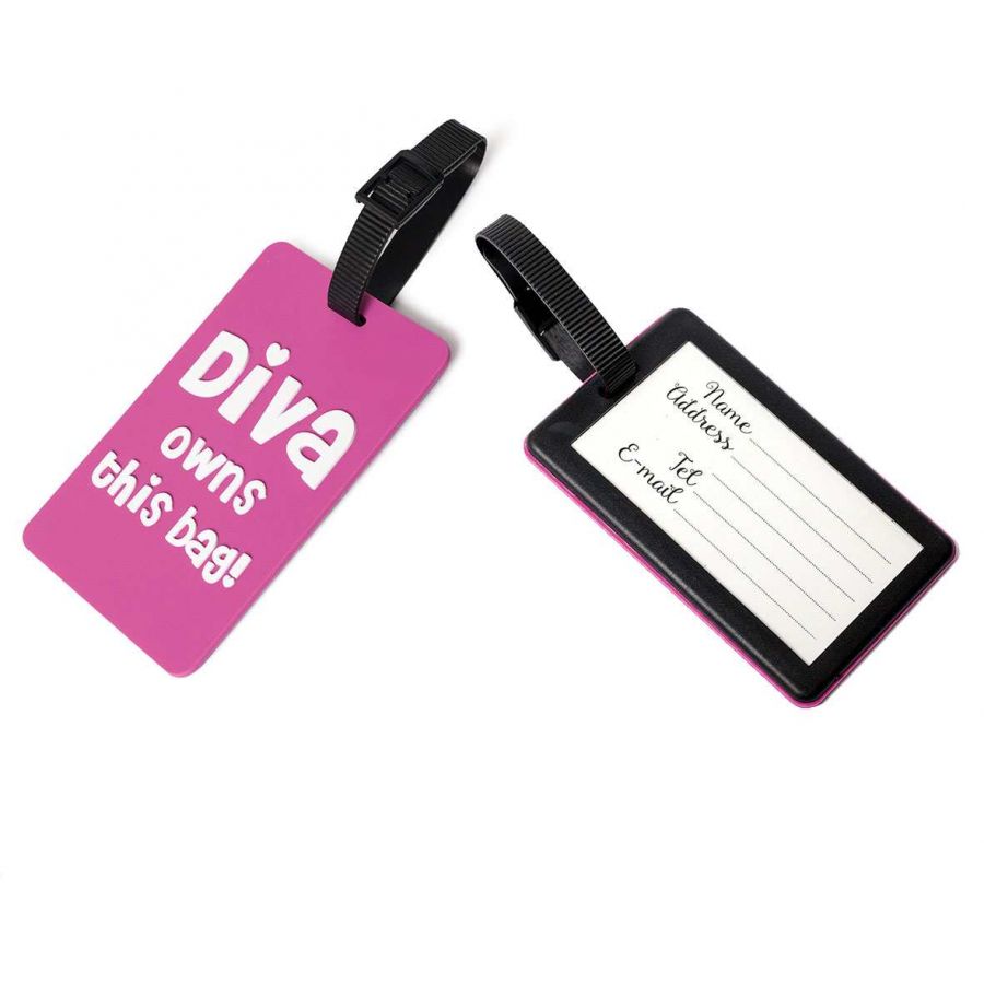 Silikonová visačka na kufr s praktickým uchycením a originálním designem. Zadní strana s popisem pro identifikaci zavazadel.
