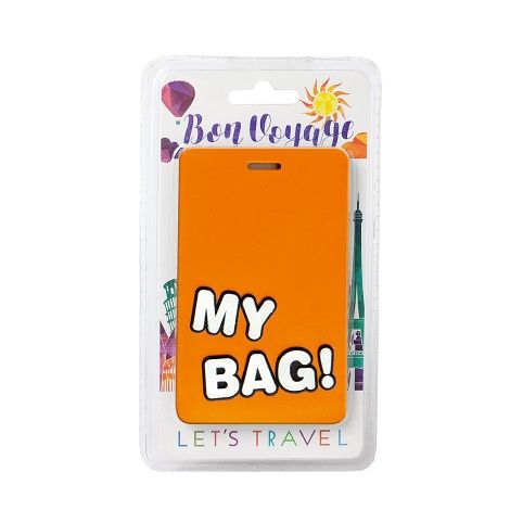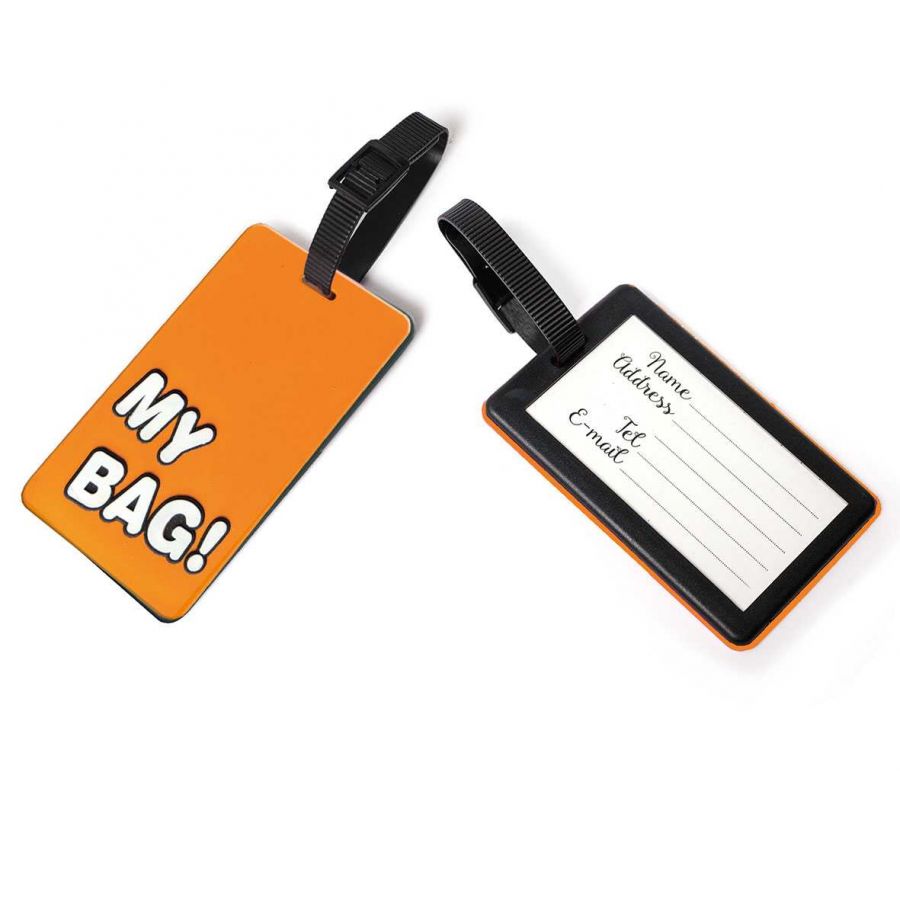 Silikonová visačka na kufr s praktickým uchycením a originálním designem. Zadní strana s popisem pro identifikaci zavazadel.