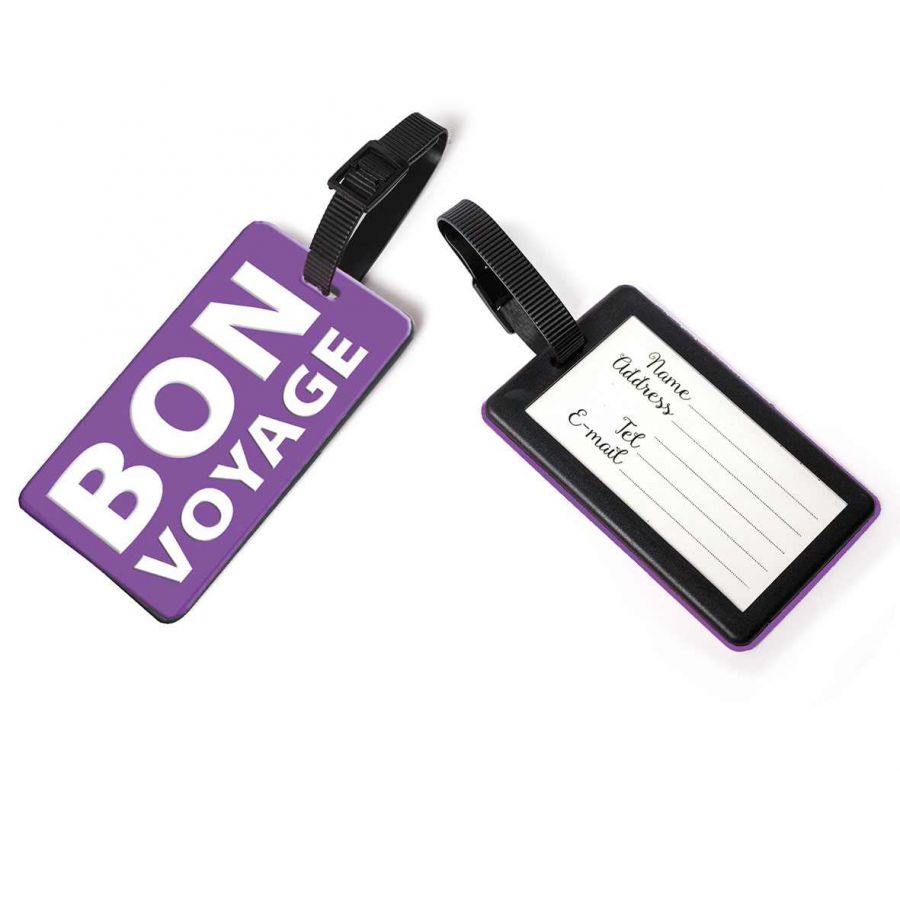 Silikonová visačka na kufr s praktickým uchycením a originálním designem. Zadní strana s popisem pro identifikaci zavazadel.