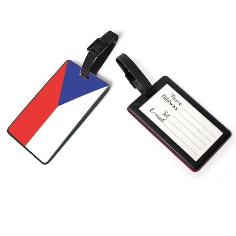 Silikonová visačka na kufr s praktickým uchycením a originálním designem. Zadní strana s popisem pro identifikaci zavazadel.