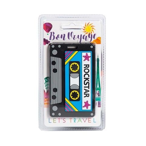 Silikonová visačka na kufr s praktickým uchycením a originálním designem. Zadní strana s popisem pro identifikaci zavazadel.