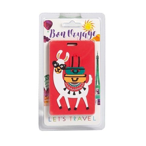 Silikonová visačka na kufr s praktickým uchycením a originálním designem. Zadní strana s popisem pro identifikaci zavazadel.