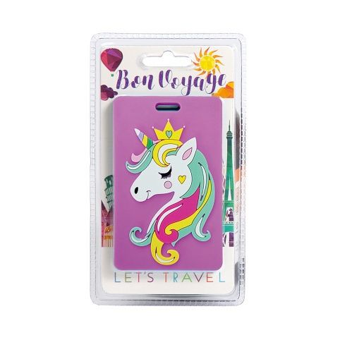 Silikonová visačka na kufr s praktickým uchycením a originálním designem.* zadní strana s popisem pro identifikaci zavazadel