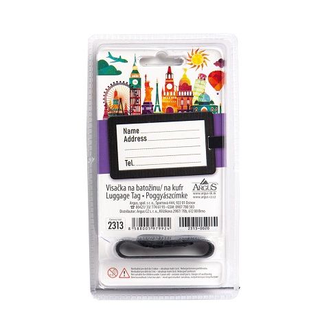 Silikonová visačka na kufr s praktickým uchycením a originálním designem.* zadní strana s popisem pro identifikaci zavazadel