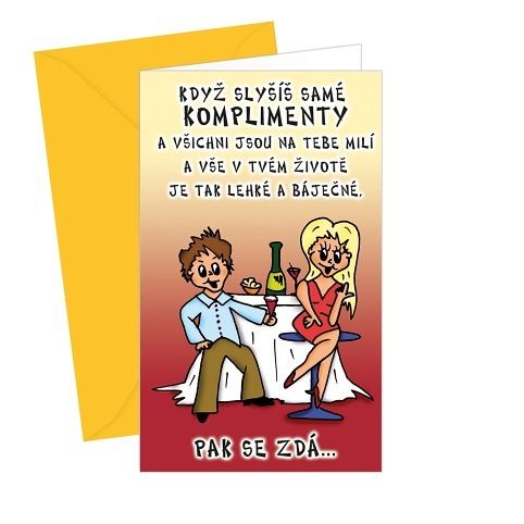 Vtipné přání k narozeninám s textem uvnitř. Součástí blahopřání je barevně sladěna obálka. Originální technologie zpracování přáníčka od společnosti ARGUS - "Na detailu záleží!"