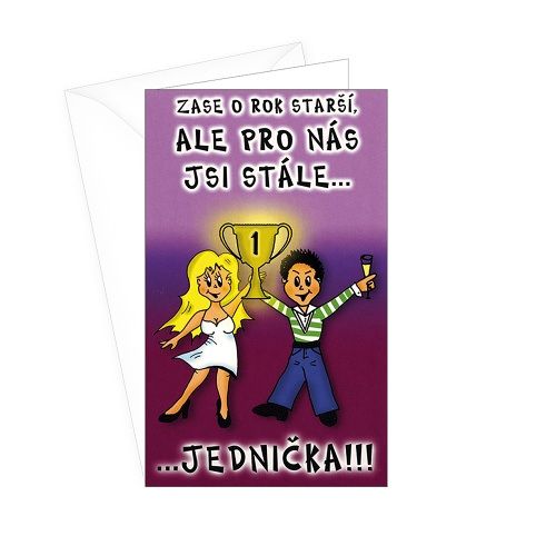 Vtipné přání k narozeninám s textem uvnitř. Součástí blahopřání je barevně sladěna obálka. Originální technologie zpracování přáníčka od společnosti ARGUS - "Na detailu záleží!"