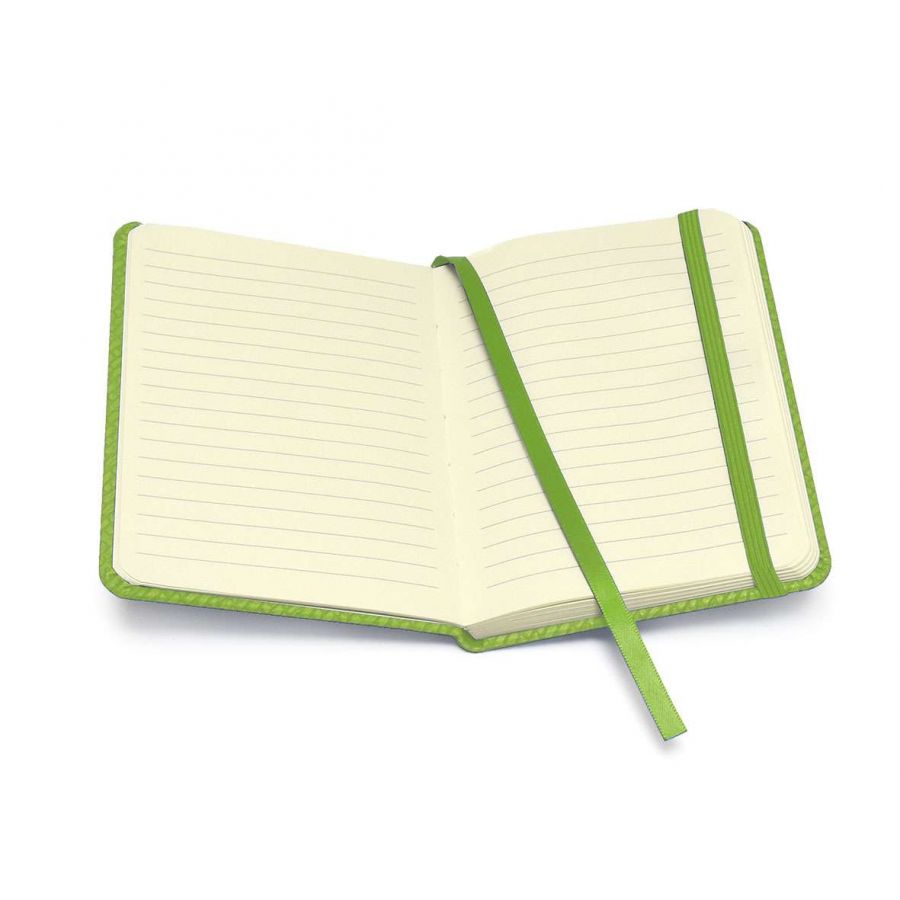 Zápisník s řádkováním obsahuje 80 listů. Tvrdá obálka a zavírání na gumičku chrání listy před poškozením. Pro lepší orientaci v zápisníku slouží textilní záložka.