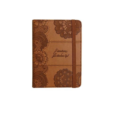 Moderní zápisník vhodný zejména pro ženy. Materiál obalu lze přirovnat k ekokůži. Je obohacený ražbou s textem: "S úsmevom je život krajší!". Zápisník obsahuje záložku a 80 linkovaných listů. Celý zápisník má k dispozici gumičku pro ochranu proti otevření a zmačkání listů ať je uložen kdekoli.