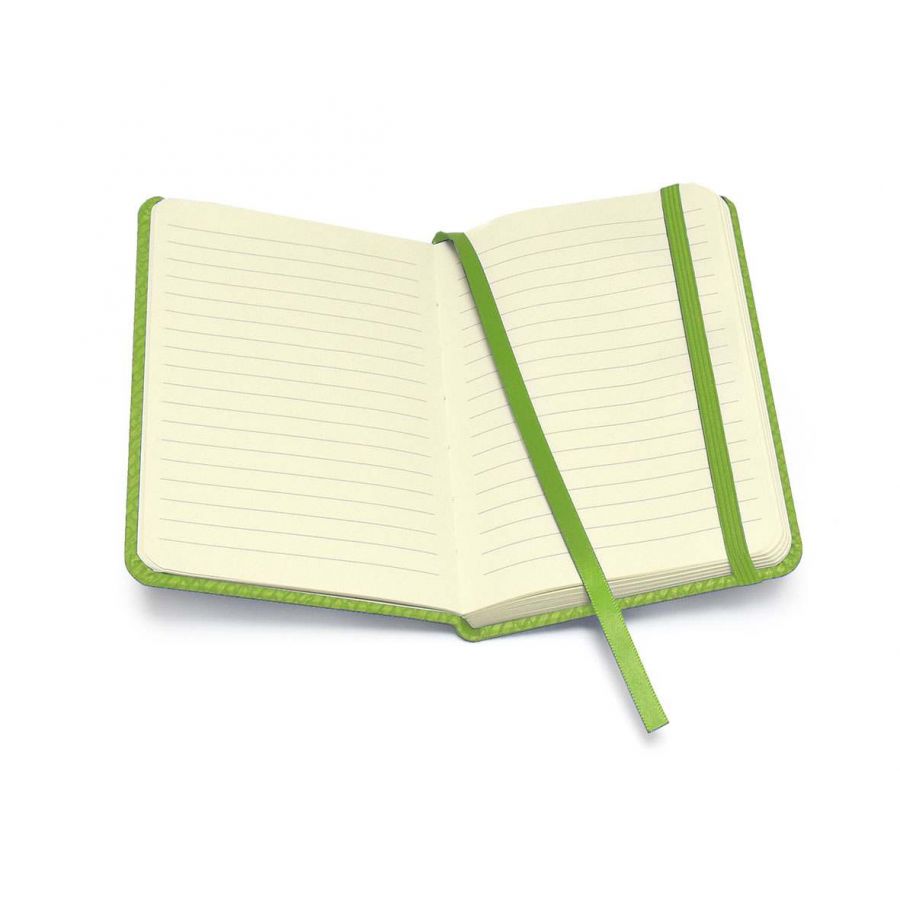 Zápisník s řádkováním obsahuje 96 listů. Tvrdá obálka a zavírání na gumičku chrání listy před poškozením. Pro lepší orientaci v zápisníku slouží textilní záložka.