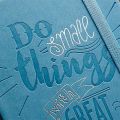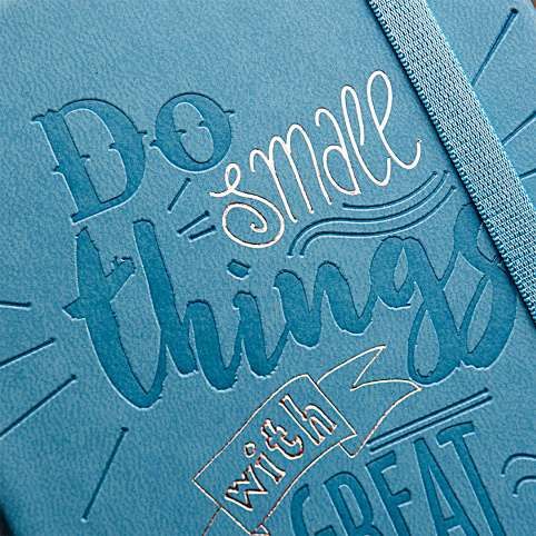 Zápisník s řádkováním obsahuje 80 listů. Tvrdá obálka a zavírání na gumičku chrání listy před poškozením. Pro lepší orientaci v zápisníku slouží textilní záložka.