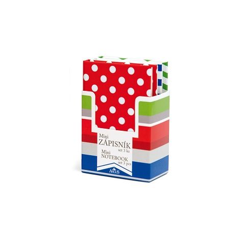 Mini zápisníky 3 kusy v boxíku. Každý zápisník obsahuje 80 listů, červený s řádky, zelený se čtverečky a modrý s čistými listy. Uvedená cena je za všechny 3 zápisníky.