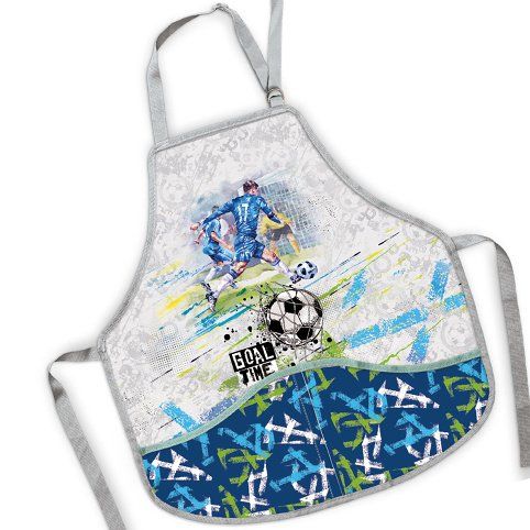 Dětská zástěra GOAL TIME na výtvarnou výchovu zabrání zašpinění oblečení a je nedílnou součástí školních pomůcek.