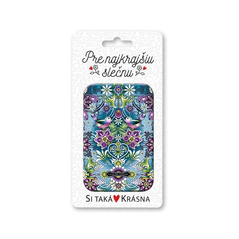 Zrcátko do kabelky v dárkovém balení s věnováním na balení. Má dvě zrcadlové plochy, přičemž jedna část má zvětšující efekt.