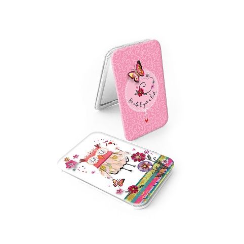 Zrcátko do kabelky v dárkovém balení s věnováním na balení. Má dvě zrcadlové plochy, přičemž jedna část má zvětšující efekt.