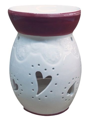 Aromalampa keramická se srdíčky 11 cm, bílá a růžová