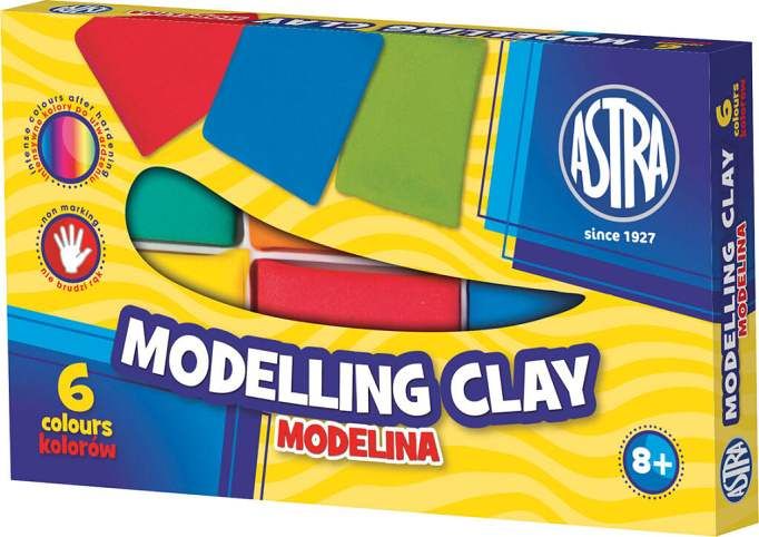 Modelína Astra obsahuje 6 základních barev: žlutá, zelená, modrá, červená, černá a bílá o hmotnosti 130 g. Hmota je na začátku tvrdší a její změkčení v dlaních může trvát 5 -10 minut. Modelína je poté měkká a krásně se s ní pracuje. Vytvrdne po upečení v troubě vyhřáté na cca 110 ° C až 130 ° C. Modelínu pečeme zhruba 30 minut. Po vytažení z trouby výtvory můžeme potřít olejem nebo postříkat lakem pro uchování zářivějších barev.