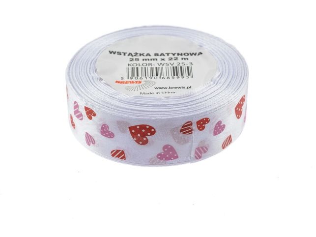 Atlasová stuha s vzorem srdce 25 mm - 3