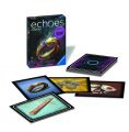 „echoes Prsten – tajemná audiohra Starožitné dědictví uvrhne mladou ženu do neštěstí. Je snad prsten prokletý? Naslouchejte ozvěnám minulosti a odhalte pravdu. Echoes, to jsou napínavé detektivní audiohry pro celou rodinu i partu přátel. Jak dobře dokážete naslouchat zvukům ve svém okolí? Ve hře echoes vyšetřujete záhady za použití svých speciálních schopností. Až budete zkoumat jednotlivé předměty, uslyšíte ozvěny z minulosti – tajemné zvuky a hlasy, které vám umožní odhalit tajnou historii předmětů a seřadit události do správného pořadí. Aktivujte zvukové nápovědy naskenováním karet. Poslouchejte zvuky a dialogy, které jsou propojené s herním materiálem. Najděte při poslechu všechny indicie, poskládejte je do správného pořadí a vyřešte záhadu. Ke hře je nutné stáhnout zdarma aplikaci Ravensburger echoes, která je kompletně namluvená v češtině – vypravěč Václav Neužil. “