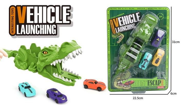 Auta s vystřelovačem. Rozměry vystřelovače 28x8x9,5 cm. Součástí vystřelovač, 3 auta.
