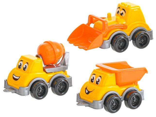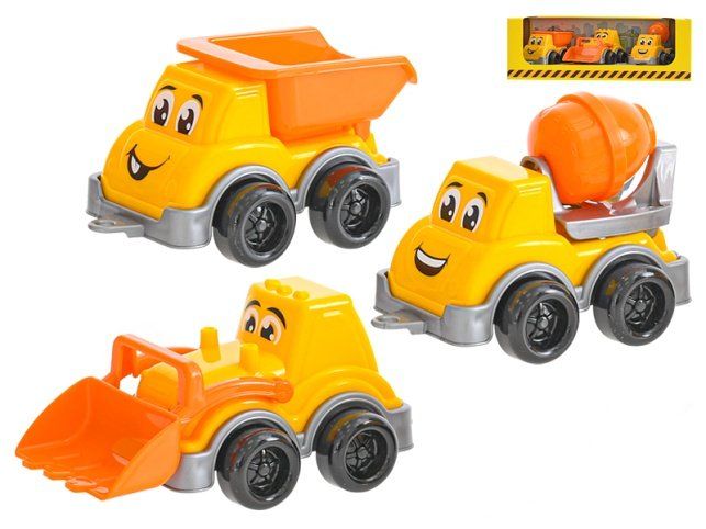 Auta stavební veselá 11-13cm 3ks v krabičce