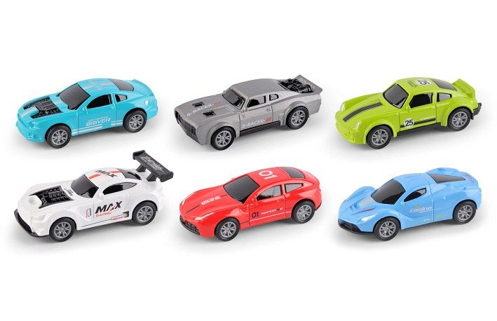Auta závodní kovová 4 ks. Rozměry auta 7,5x3,2x2,5 cm. Balení obsahuje 4 ks. Volná kola. Více variant.