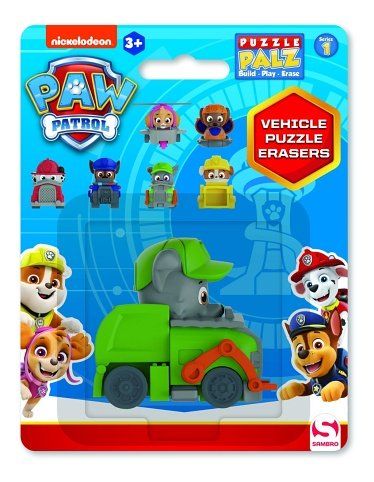 Tlapková patrola gumová puzzle autíčka – sestav si 6 druhů známých postaviček včetně autíček.