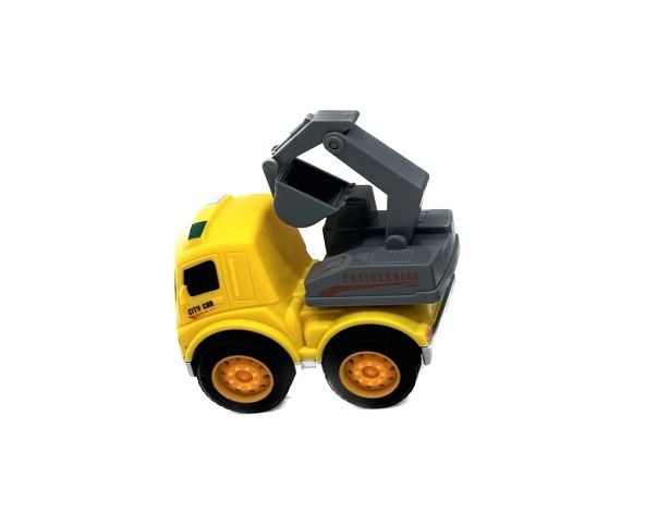 Plastové autíčko má 4 designy stavebních strojů – míchačka, nákladní auto, auto s nakládací lžicí a auto s navijákem.