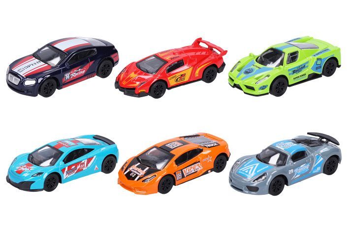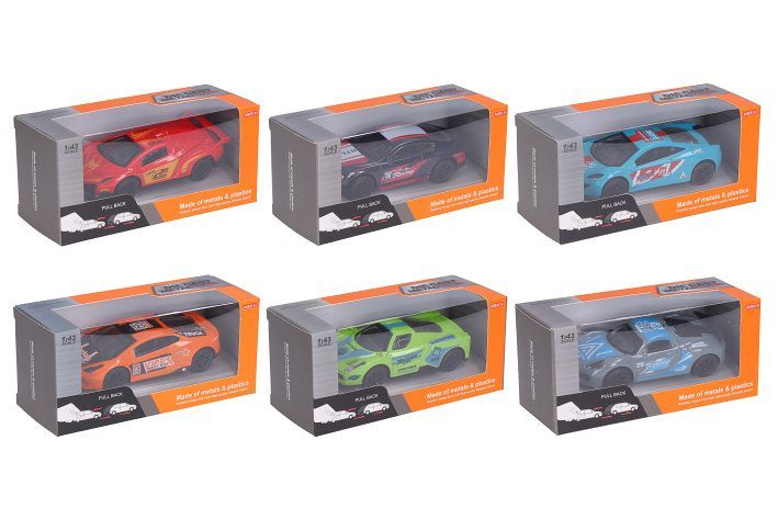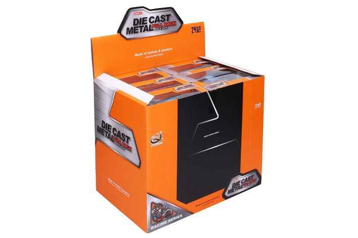 Autíčko na zpětné natažení. Velikost 10cm. 24ks v display boxu, autíčka jsou ještě samostatně balená v krabičce. Měřítko 1:43, více barevných variant.
