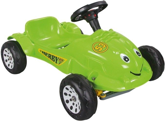 Šlapací autíčko Herby s volantem, klaksonem, nastavitelným zrcátkem. Maximální nostnost 35 kg . Splňuje nejpřístnější normy EU. Vyrobeno ze zdravotně nezávadného materiálu.