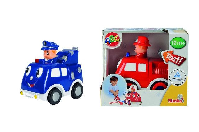 Autíčko s řidičem, který při jízdě hýbe hlavou. Do pohybu se uvede přimáčknutím hlavičky řidiče. Délka 11 cm.Hasiči nebo policie.