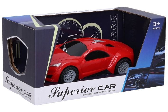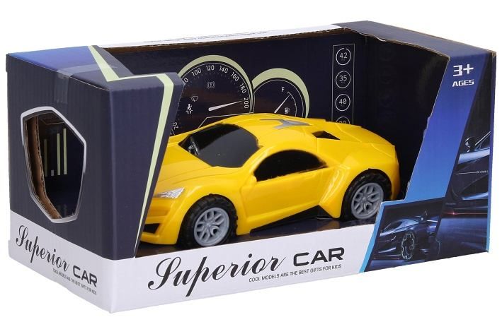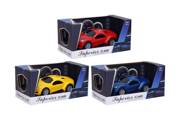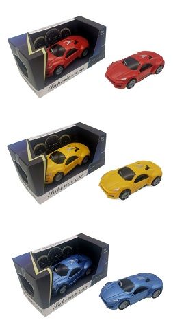 Auto. Rozměry 16,5x7,5x4,6 cm. Na setrvačník. 3 varianty - červená, žlutá, modrá.
