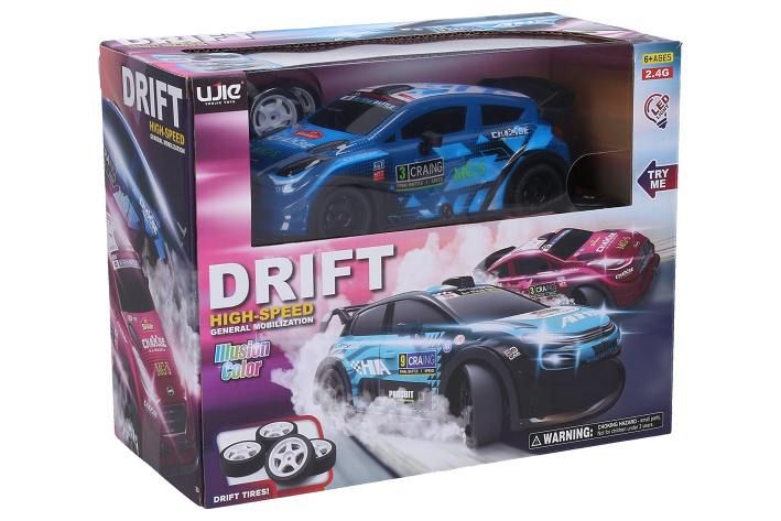 Auto 23 Sprint driftující svítící RC na dálkové ovládání. Rozměry 18,5x8x7 cm. Frekvence 2. 4GHz. Pistolový ovladač. Součástí 4 standardní a 4 driftující kola. Světelné efekty povrchu auta tlačítkem na ovladači. Bateriový pack 3. 7V 500mAh lithium do auta součástí, 2xAA do ovladače nejsou součástí. Try Me tlačítko pro světelné efekty v obalu - 3xAG13 baterie (neměnitelné) součástí. Při vybalování nutno odpojit Try Me kabel z auta. USB kabel součástí. Rychlost 12 km/h. Provoz až 20 min, nabíjení 2 h, dosah až 40 m. Přepínač ON/OFF na spodní straně auta a na ovladači.