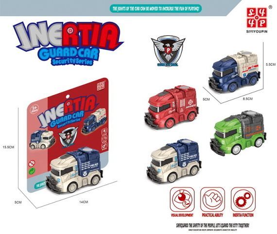 Auto. Rozměry 8,5x5x5,5 cm. Na setrvačník. 4 varianty - sanitka, policie, hasiči, popeláři.